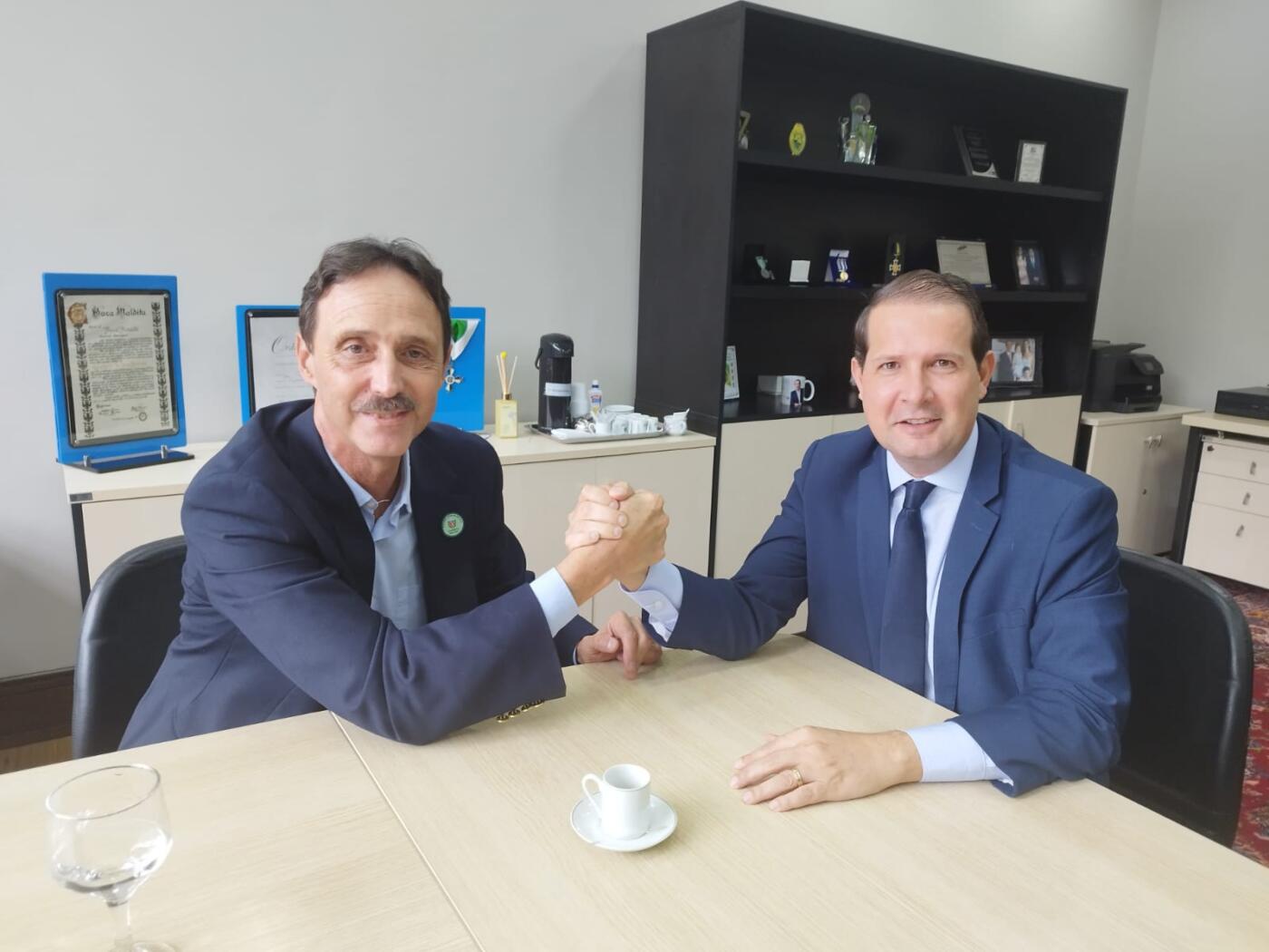 O ex-diretor geral brasileiro da Itaipu Binacional, Marcos Stamm, visitou o Gabinete do deputado estadual e primeiro vice-presidente da Assembleia Legislativa, Marcel Micheletto, que acaba de assumir a coordenação da Frente Parlamentar para Acompanhamento da Renegociação do Tratado de Itaipu.