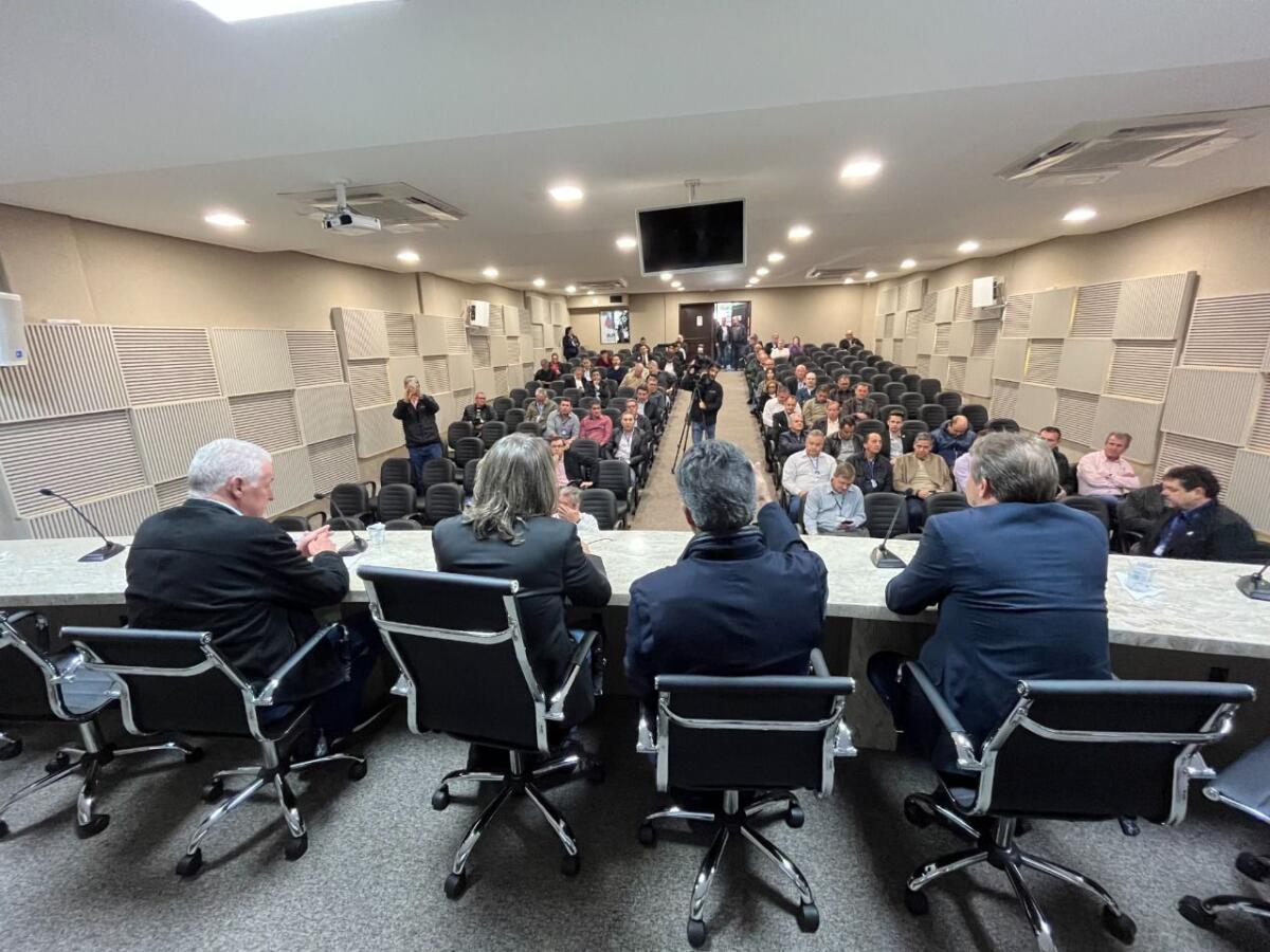 O ex-governador participou da 7ª Assembleia Geral Ordinária da Amop e foi recebido por dezenas de prefeitos, vice-prefeitos e lideranças políticas e empresariais, no auditório da associação, em Cascavel.