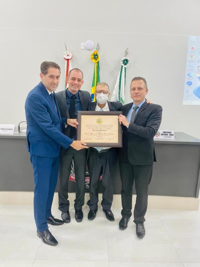 O autor da homenagem é o vereador Cristiano Metzner (Suko), que em seu discurso descreveu a solenidade como um momento “fantástico e emocionante” de reconhecimento ao professor, que ao lado da família e amigos, recebeu a maior honraria do Município.