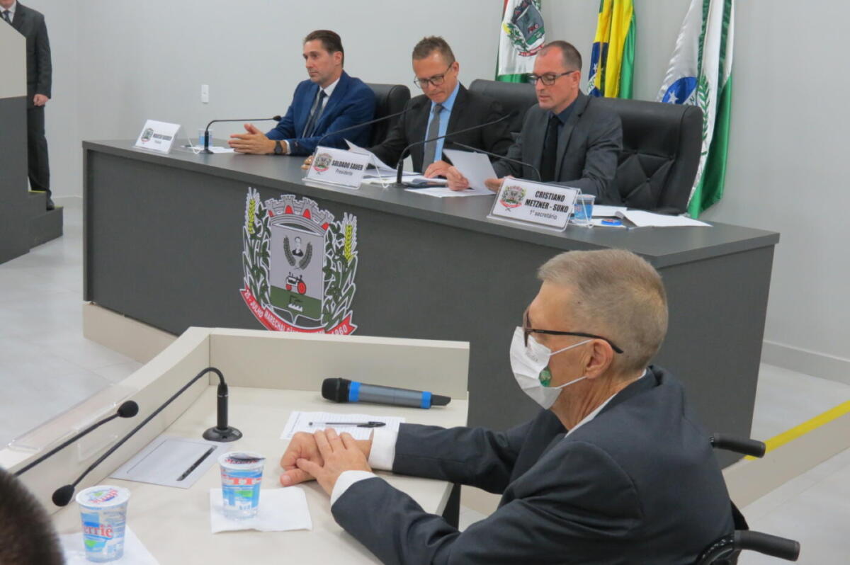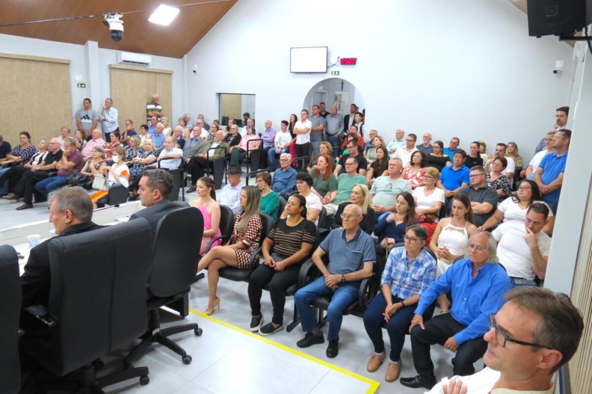 Com a participação de todos os vereadores e do prefeito Marcio Rauber, ainda compuseram a frente de honra da cerimônia o ex-deputado estadual e atual ouvidor da Assembleia Legislativa, Elio Rusch; e o representante do deputado estadual Hussein Bakri, Luciano Scherer.