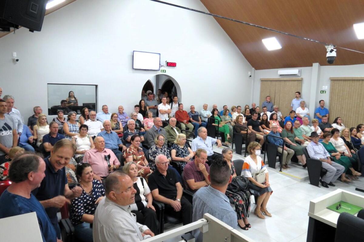 O plenário da Câmara de Vereadores de Marechal Cândido Rondon ficou pequeno para receber todo o público que compareceu para prestigiar a sessão solene, ocorrida na noite desta segunda-feira (9), para entrega do título de Cidadão Honorário do Município ao professor Harraldo Altmann.