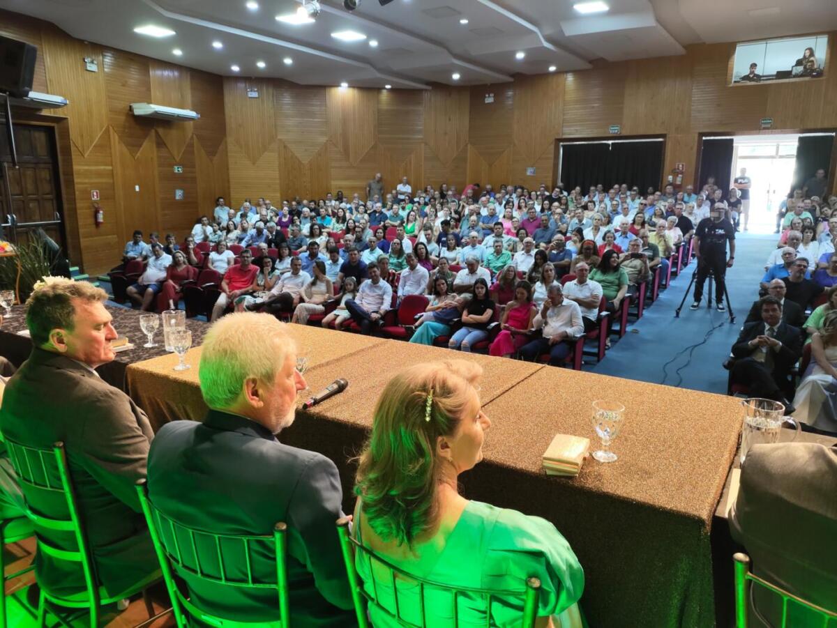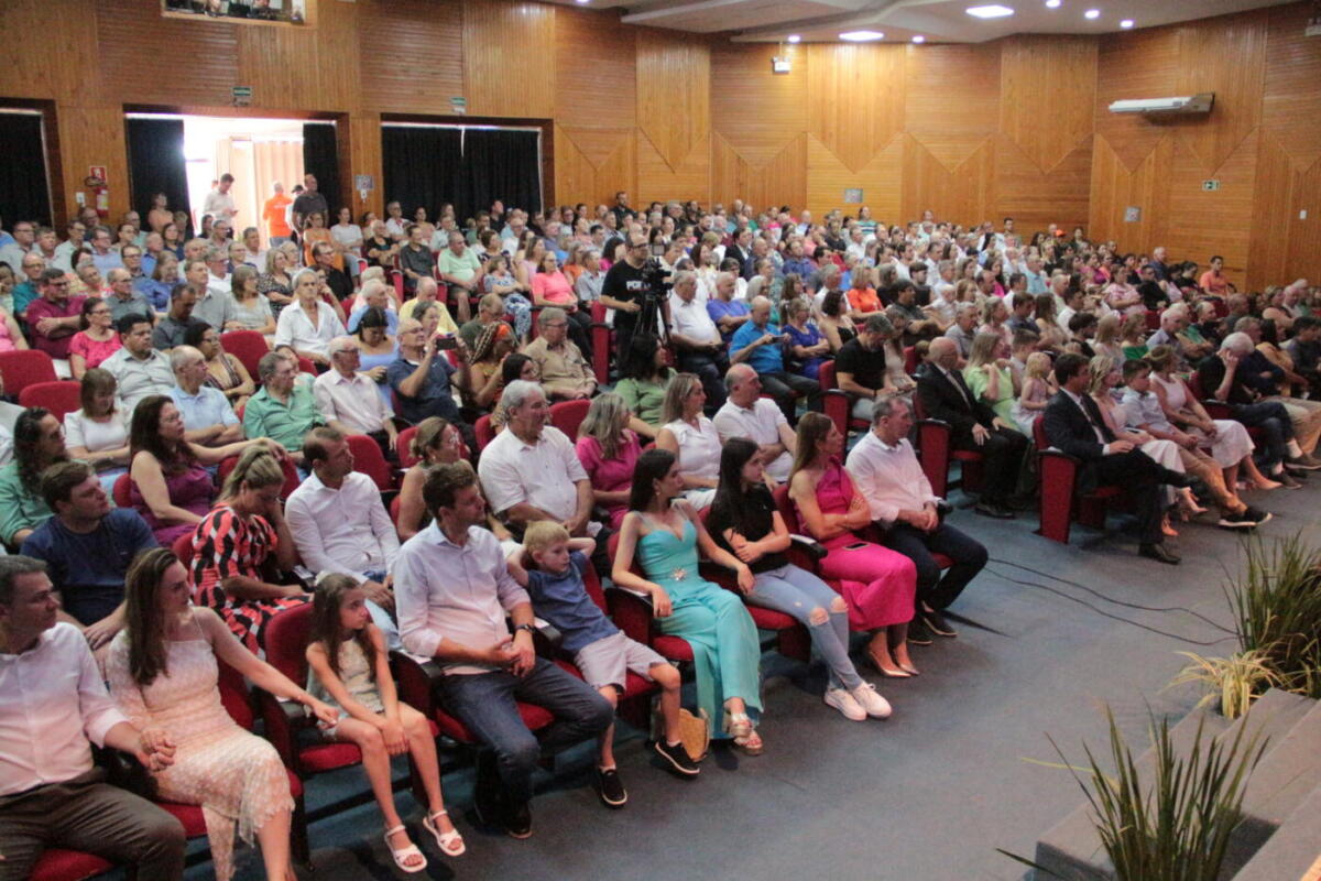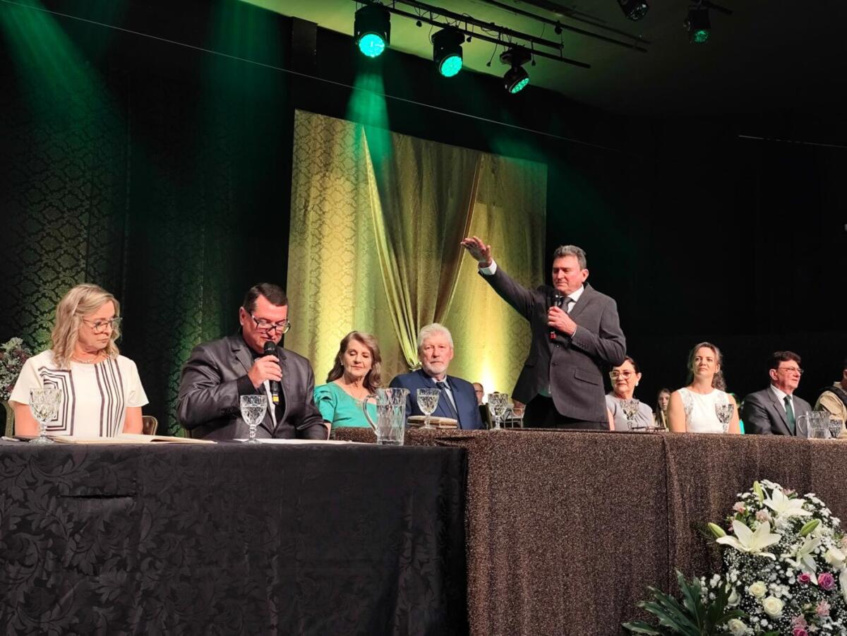 Por meio do Poder Legislativo, foi realizada na manhã de quarta-feira (1º), a cerimônia de posse do prefeito Lari Hitz (UB) e vice-prefeito Roque Lorenzatto (PP) para a gestão 2025/2028. Eles foram empossados pelo presidente da Câmara de Vereadores, Amauri Ladwig (PL).