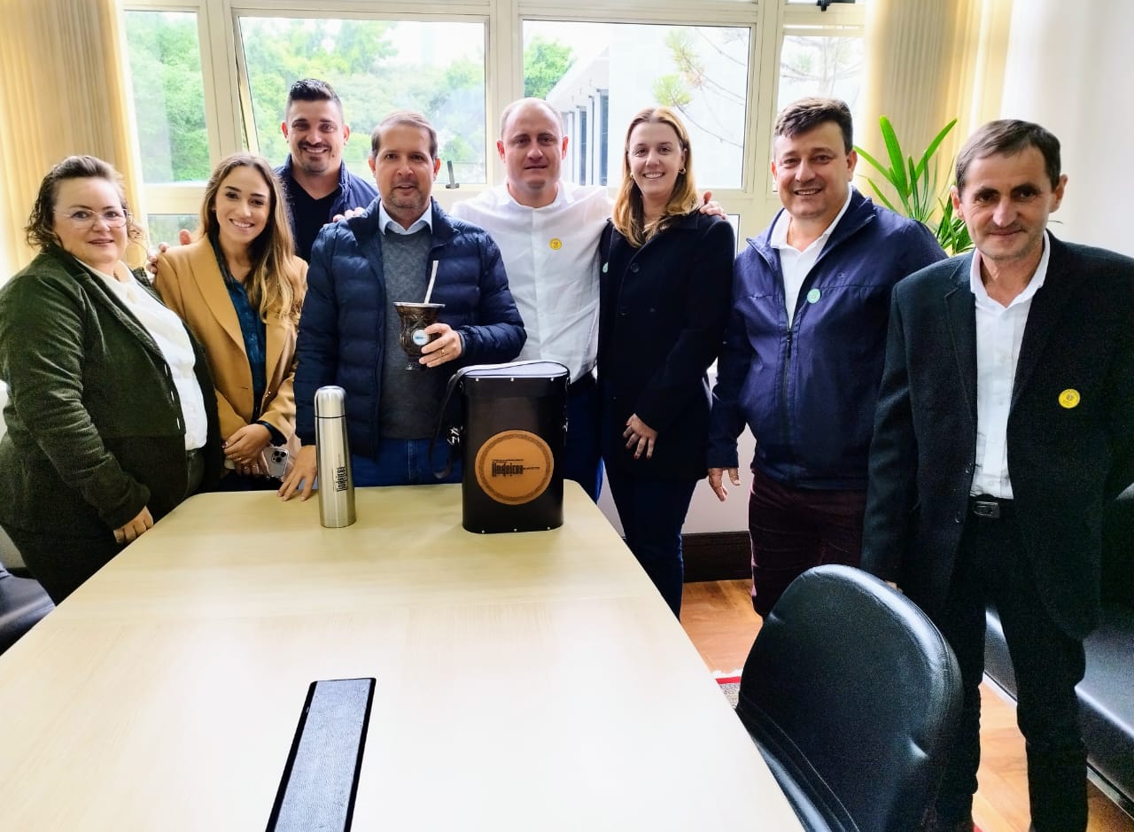 Uma comitiva de lideranças do município de Santa Helena visitou nesta quarta-feira (31), em Curitiba, o gabinete do deputado estadual e primeiro vice-presidente da Assembleia Legislativa, Marcel Micheletto. Estiveram presentes o prefeito Evandro “Zado” Grade, (também presidente do Conselho de Desenvolvimento dos Municípios Lindeiros ao Lago de Itaipu); o vice prefeito Dinho Maraschin; os vereadores Anderson Draghetti, Valmir Federizzi, Tânia Osório e Fabricia Bedendo, além da assessora parlamentar Eduarda dos Santos.