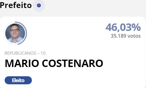Mario Costenaro (Republicanos): 35.189 votos, 46,03% dos votos válidos
