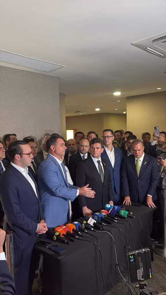 Durante o evento, Moro destacou a importância de o Senado contar com maioria alinhada para viabilizar mudanças no país e agradeceu o apoio recebido de Flávio Bolsonaro e Valdemar Costa Neto nesse novo momento político.