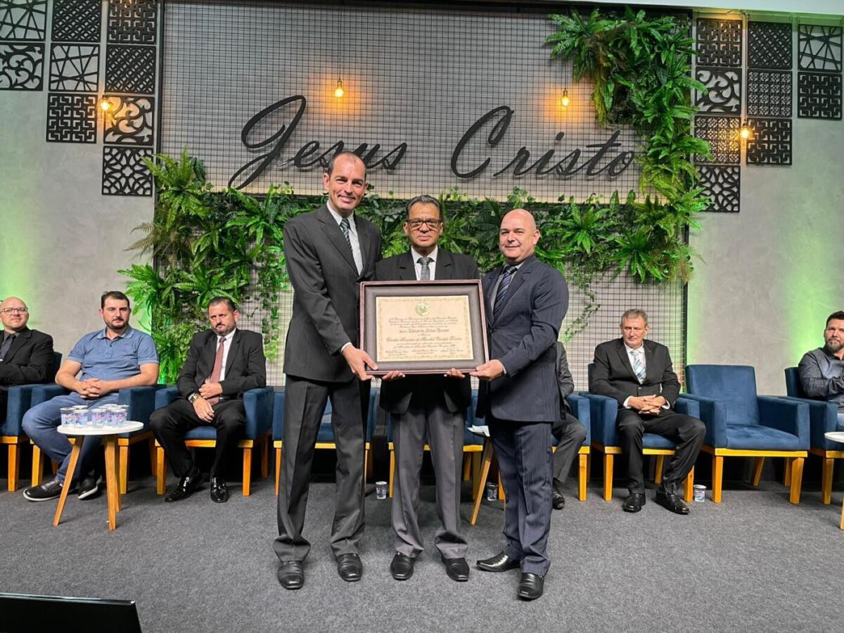 A Câmara de Vereadores de Marechal Cândido Rondon realizou na noite desta quarta-feira (15), sessão solene de entrega do título de Cidadão Honorário do Município ao pastor Edmar da Silva Ramos, da Igreja de Deus Ecos da Liberdade, local onde ocorreu a cerimônia.