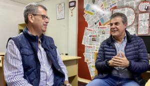Beto com um dos amigos que lhe permaneceu fiel e lhe defende no vale tudo dos grupos de WhatsApp, o ex-vice-prefeito Maurício Theodoro, o “Magal” (Foto: Jairo Eduardo)