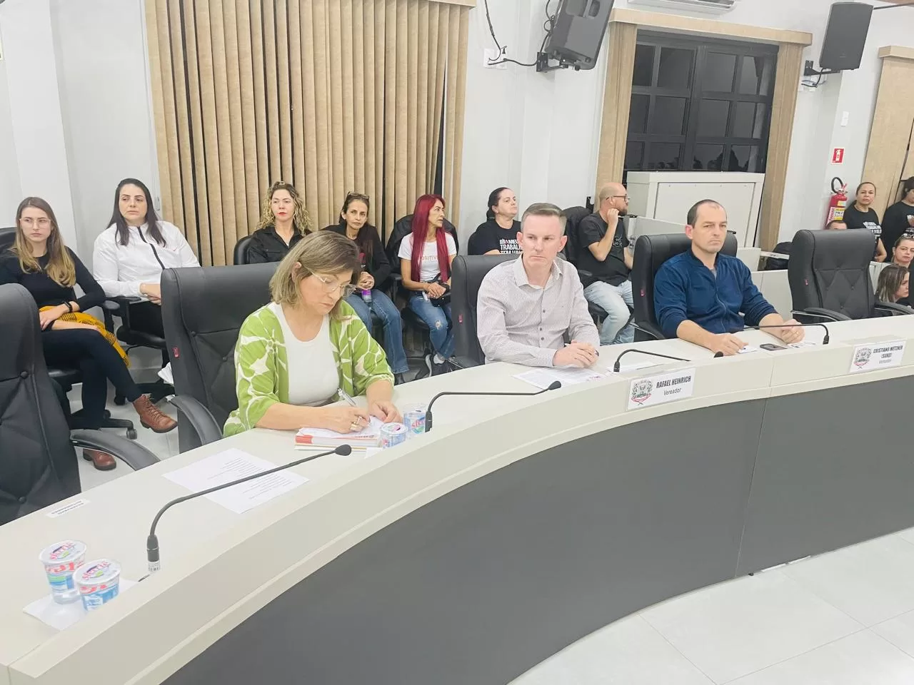 A audiência pública foi convocada pela Comissão de Educação, Cultura, Saúde, Bem-Estar Social e Ecologia, presidida por Fernando Nègre e composta ainda pelos vereadores Juliano Oliveira e Rodrigo Pulga (Verde). Também estiveram presentes os vereadores presidente Valdir Sachser, 1º secretário Coronel Welyngton, Iloir Padeiro, Juca, Rafael Heinrich, Sargento Spohr e Suko.