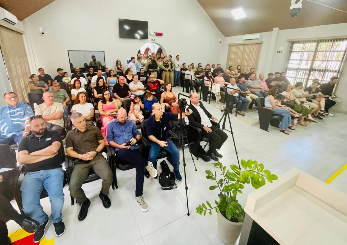 Em nome do Poder Legislativo, vereador presidente Valdir Sachser saudou o Policial Fabio, enfatizando a importância do trabalho da Casa de Leis. “Que em 2026 possamos usar o caminho do meio, não os extremos, para defender os interesses da grande maioria do nosso povo”, destacou.