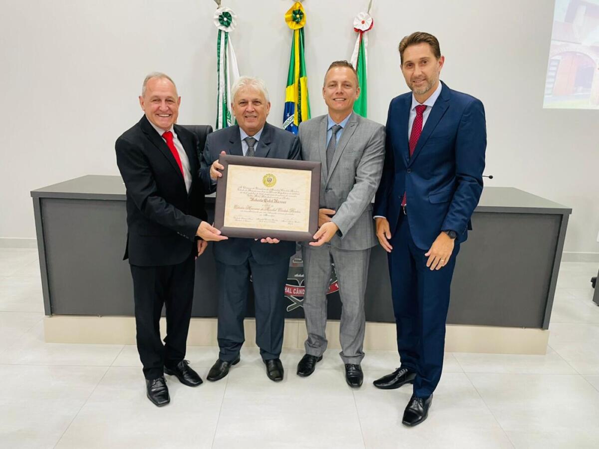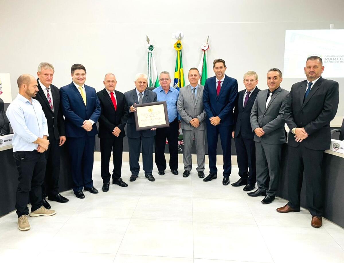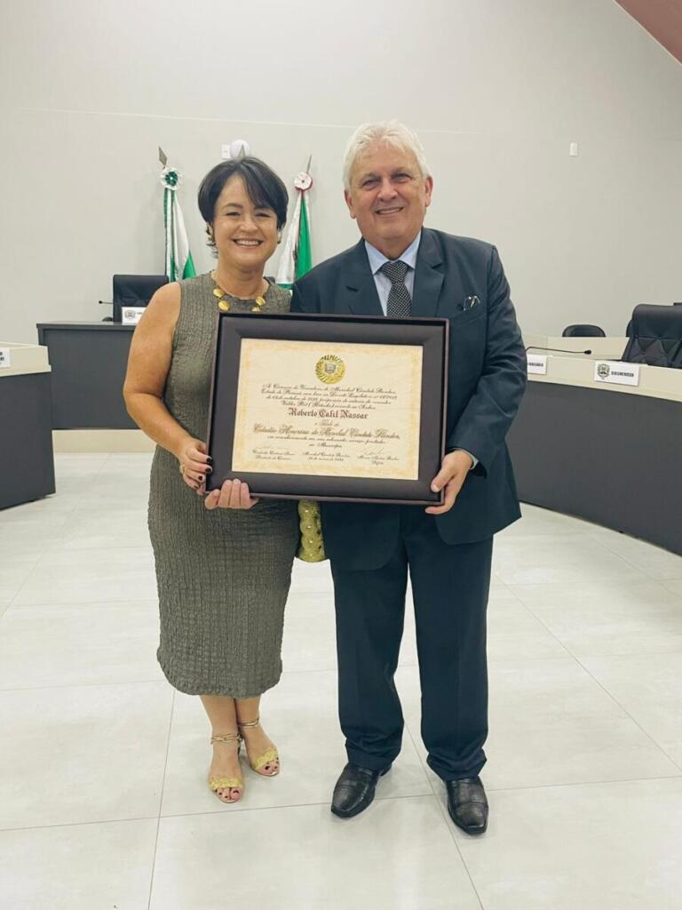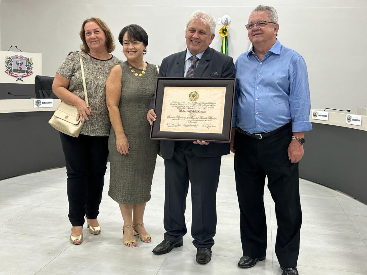 Em sessão solene realizada na noite de terça-feira (26), o Poder Legislativo de Marechal Cândido Rondon homenageou o professor Roberto Kalil Nassar com o título de Cidadão Honorário do município. A cerimônia aconteceu no Plenário da Casa de Leis.