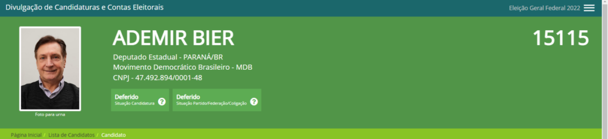 O registro da candidatura de Ademir Bier seguiu todo o trâmite normal no TRE, estando legalmente apto para a disputa das eleições em 02 de outubro.