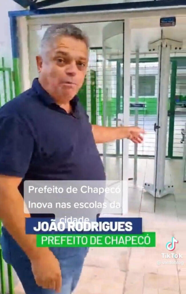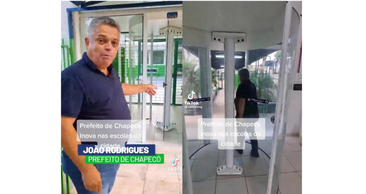 Em Chapecó, Santa Catarina, todas as escolas municipais têm portas giratórias nas entradas. Veja abaixo: