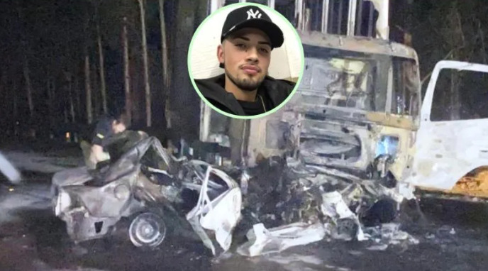 Impacto da colisão entre o Voyage e o caminhão dos Correios fez com que ambos veículos se incendiassem