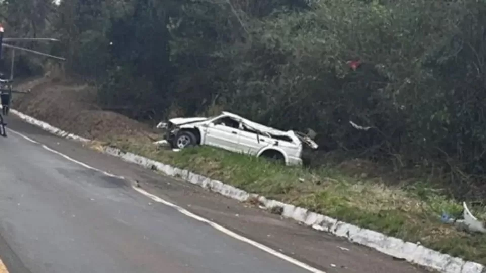 Veículo saiu da pista, invadiu a faixa contrária e capotou