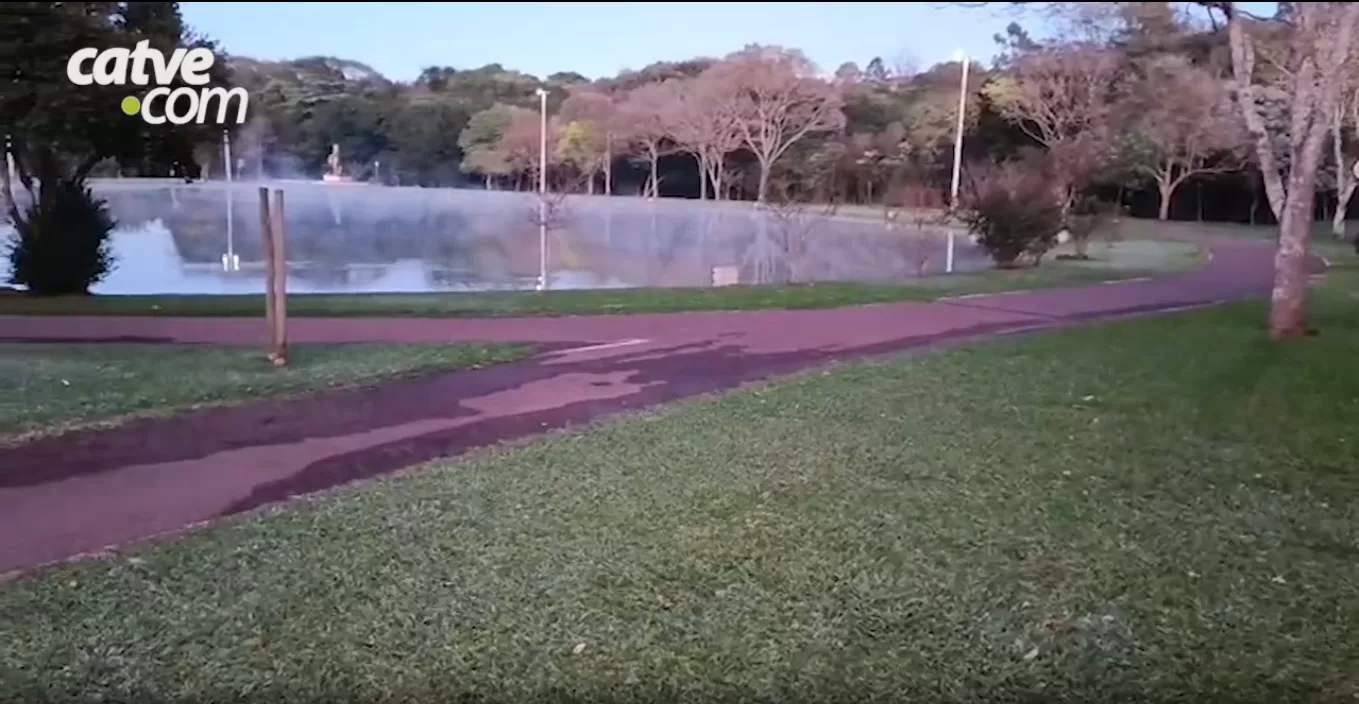 Mesmo com o frio intenso, moradores se arriscaram em caminhadas no Lago dos Pioneiros e no Parque Ecológico