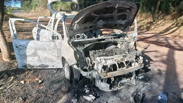 Morador foi rendido dentro de casa por elementos encapuzados, que fugiram com o carro e o incendiaram em área rural