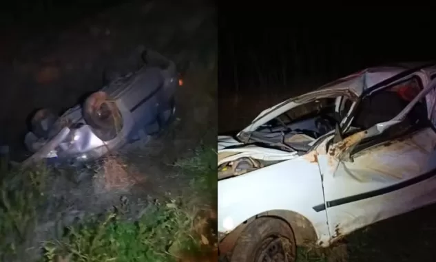 O acidente aconteceu quando a motorista perdeu o controle do veículo GM/Celta, resultando no capotamento
