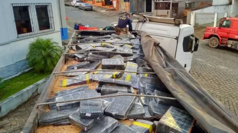 Motorista de caminhão foi preso em Irati após policiais encontrarem 153 fardos do entorpecente misturados ao carregamento