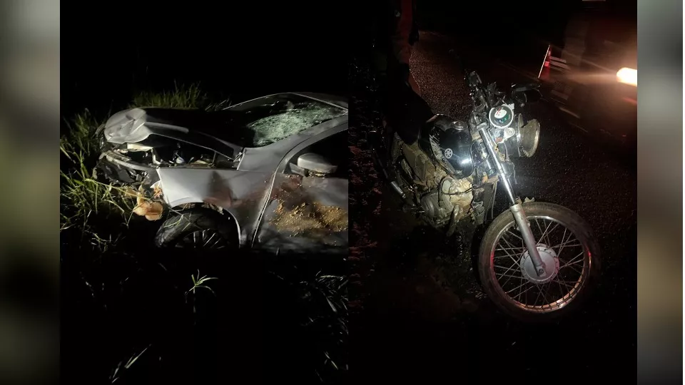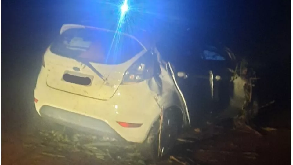 Carro é abandonado após colisão e capotamento em Marechal Rondon