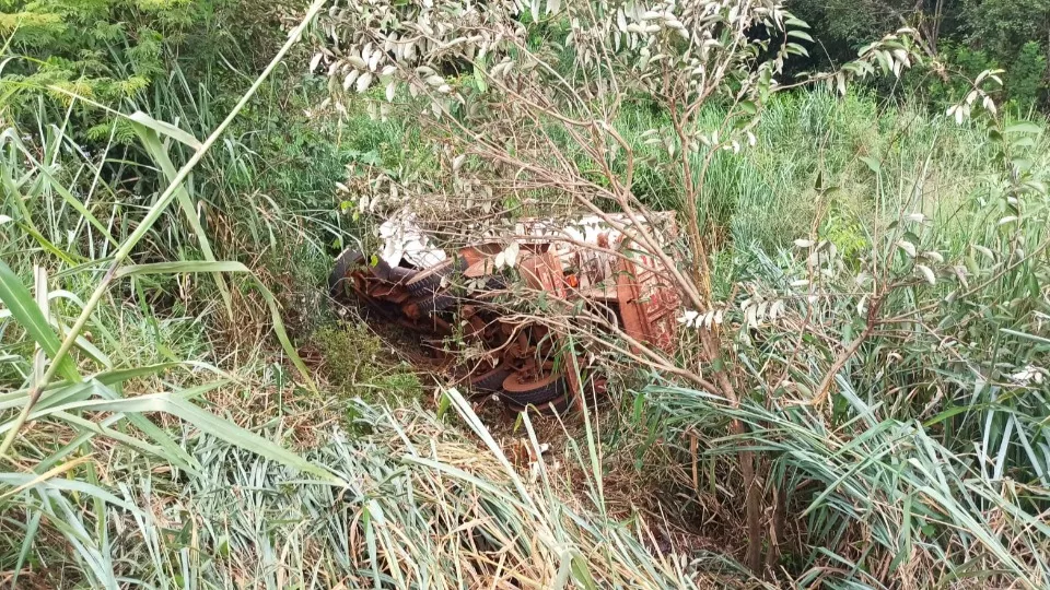Caçamba destruiu guard-rail e desceu barranco após fila se formar na PR-317