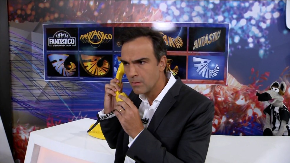 Durante o quadro dos cavalinhos no Fantástico, um barulho interrompeu a fala do Tadeu. Era o temido Big Fone! Ele atendeu e ouviu este alerta: