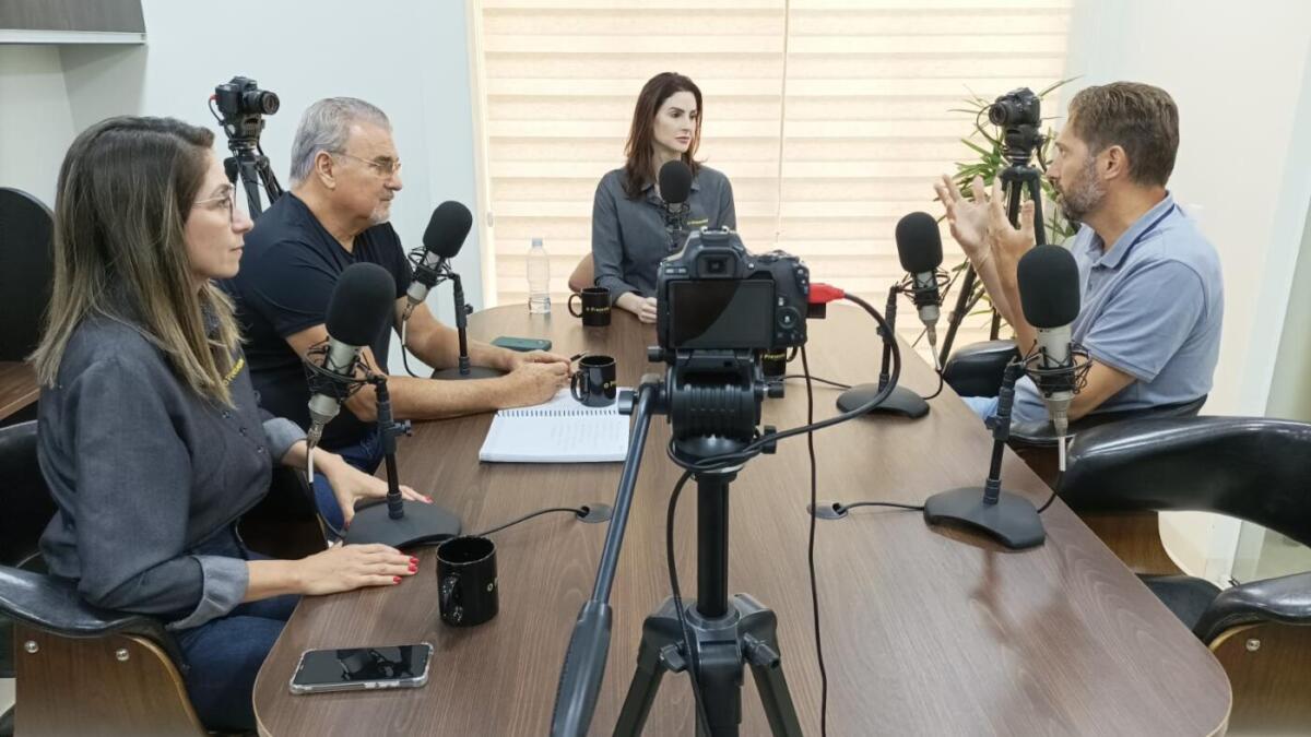 Prefeito de Marechal Rondon, Marcio Rauber, foi entrevistado pelos jornalistas Ana Paula Wilmsen, Arno Kunzler e Maria Cristina Kunzler (Foto: Sandro Mesquita/OP)
