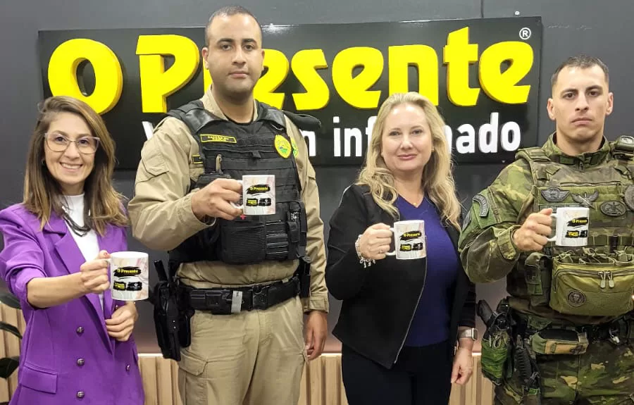 O comandante da 2ª Companhia da Polícia Militar, capitão Paulo de Lima, o tenente Joeckel, do Batalhão de Polícia de Fronteira (BPFron), e Carla Rieger, integrante do Conselho Comunitário de Segurança (Conseg) de Marechal Cândido Rondon estiveram no O Presente, na quarta-feira (14), para divulgar a 7ª Feijoada Beneficente, que acontece neste sábado (16), na AACC, a partir das 11h30.