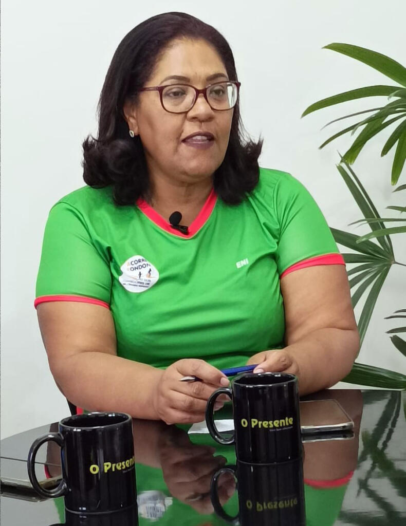Presidente da Acorre Rondon, Eni Aparecida dos Santos, esteve no Jornal O Presente na segunda-feira (26) para falar da trajetória da Acorre, divulgar a 7ª Corrida da Reforma, entre outros assuntos ligados à corrida de rua e atletismo (Fotos: Sandro Mesquita/OP)