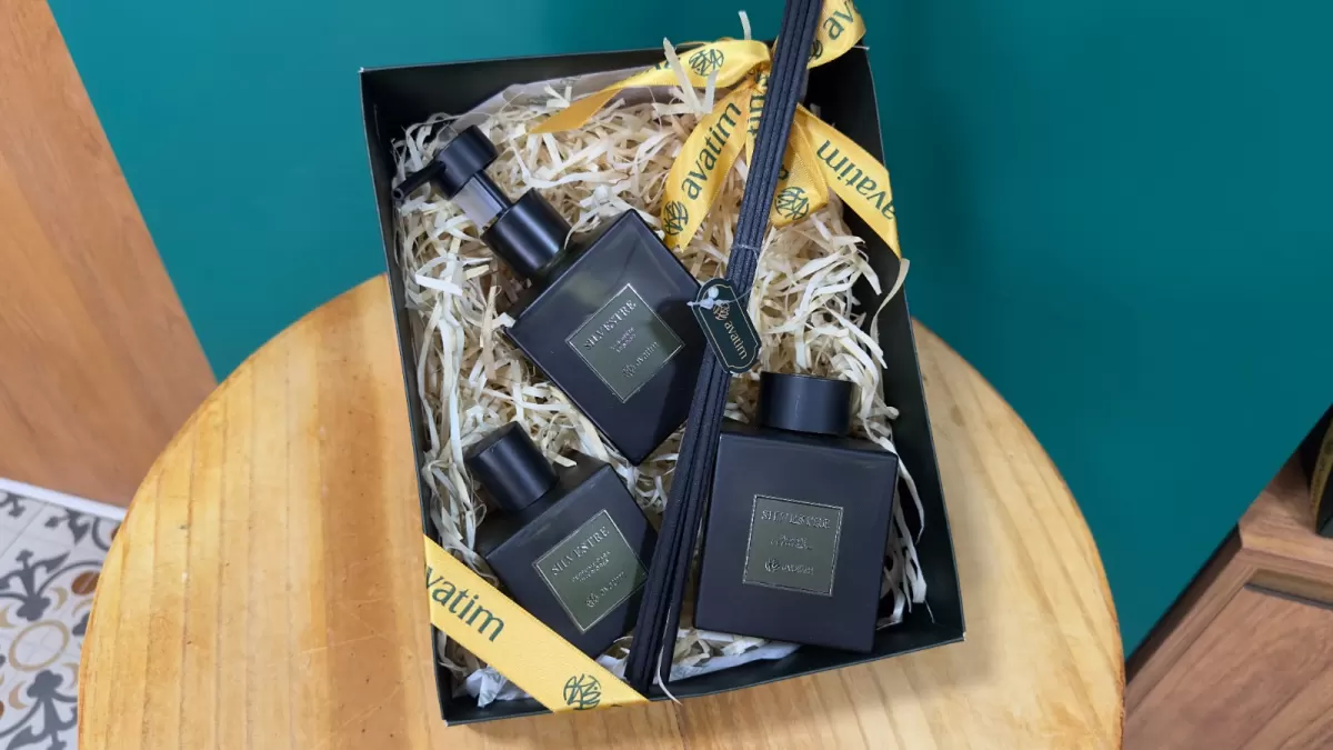 Além dos perfumes, a Avatim oferece produtos para cuidados corporais, como hidratantes, sabonetes e óleos aromáticos, e também fragrâncias para ambientes, perfeitas para deixar cada espaço da casa mais acolhedor e cheio de personalidade.