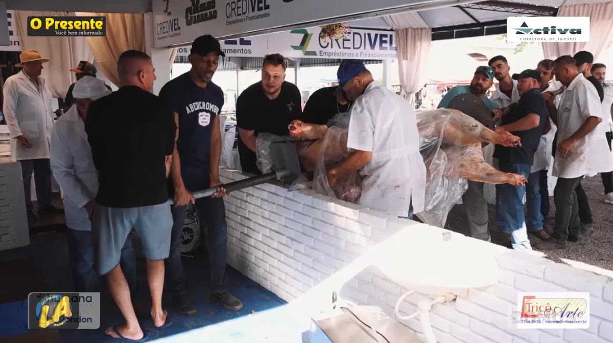 As equipes que irão participar do concurso, 43 ao todo, estão a todo vapor: os animais foram preparados, receberam o tempero e agora estão sendo colocados para assar.