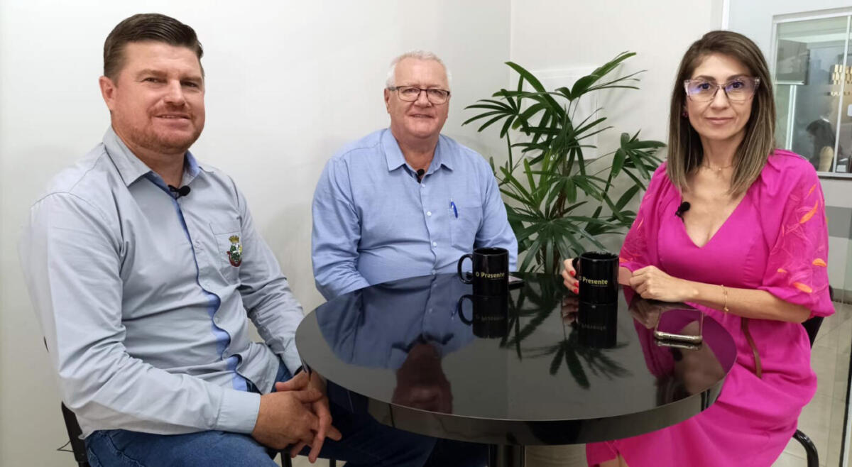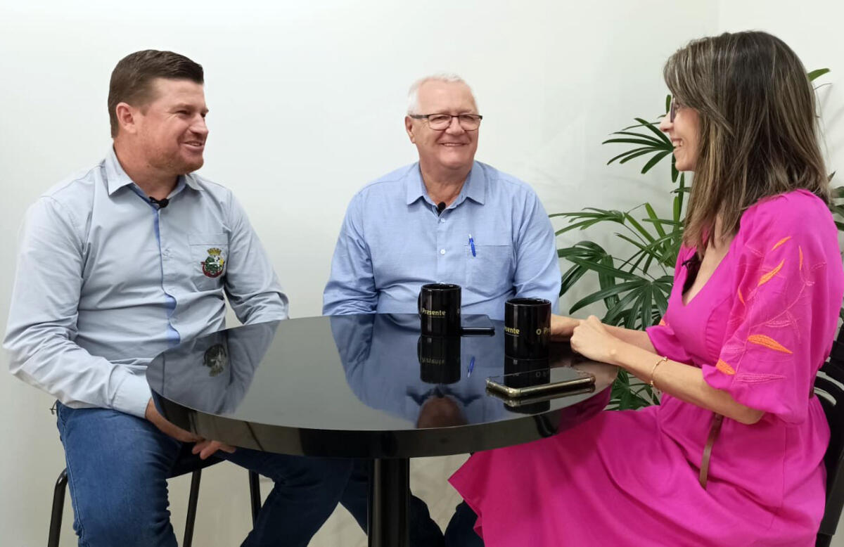 O presidente da Comissão Central Organizadora (CCO) da 23ª Oktoberfest de Pato Bragado e secretário de Planejamento, Lucas Blatt, e o prefeito Leomar Rohden (Mano) estiveram no Jornal O Presente, nesta terça-feira (3), para divulgar a programação da tradicional festa germânica, que começa neste fim de semana com a realização do Café Colonial.