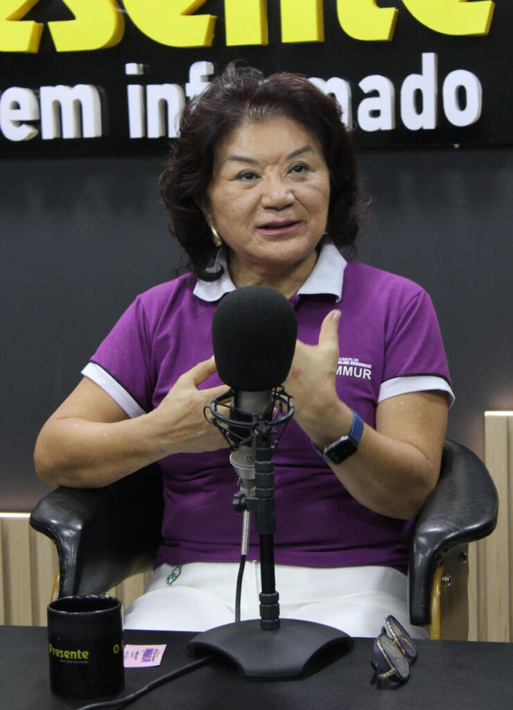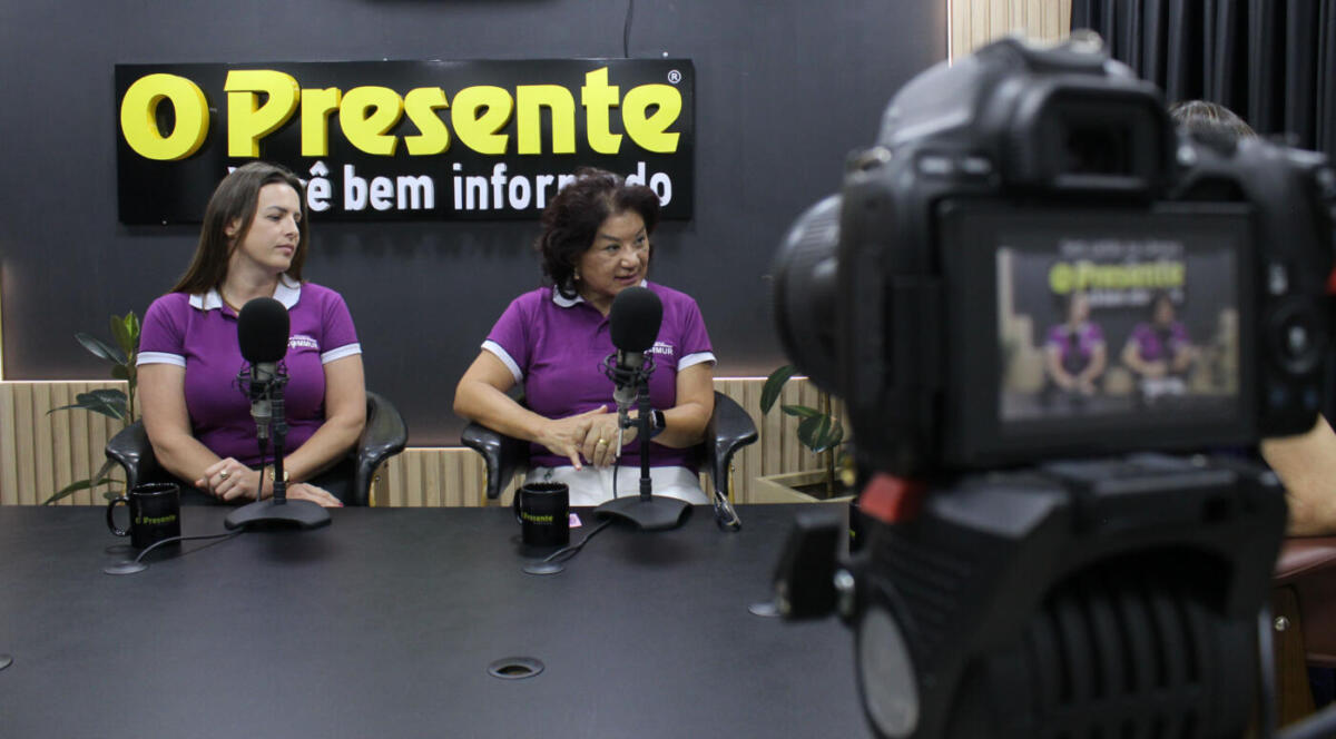 A vice-presidente do Conselho Municipal dos Direitos da Mulher Rondonense (Commur), Neusa Kussaba, e a conselheira Luciani Hellmann estiveram no Jornal O Presente, nesta terça-feira (20), para divulgar o Agosto Lilás (Fotos: Sandro Mesquita/OP)Luciani e Neusa participaram do Play, o programa que liga você à informaçãoRegistro dos bastidores do programa