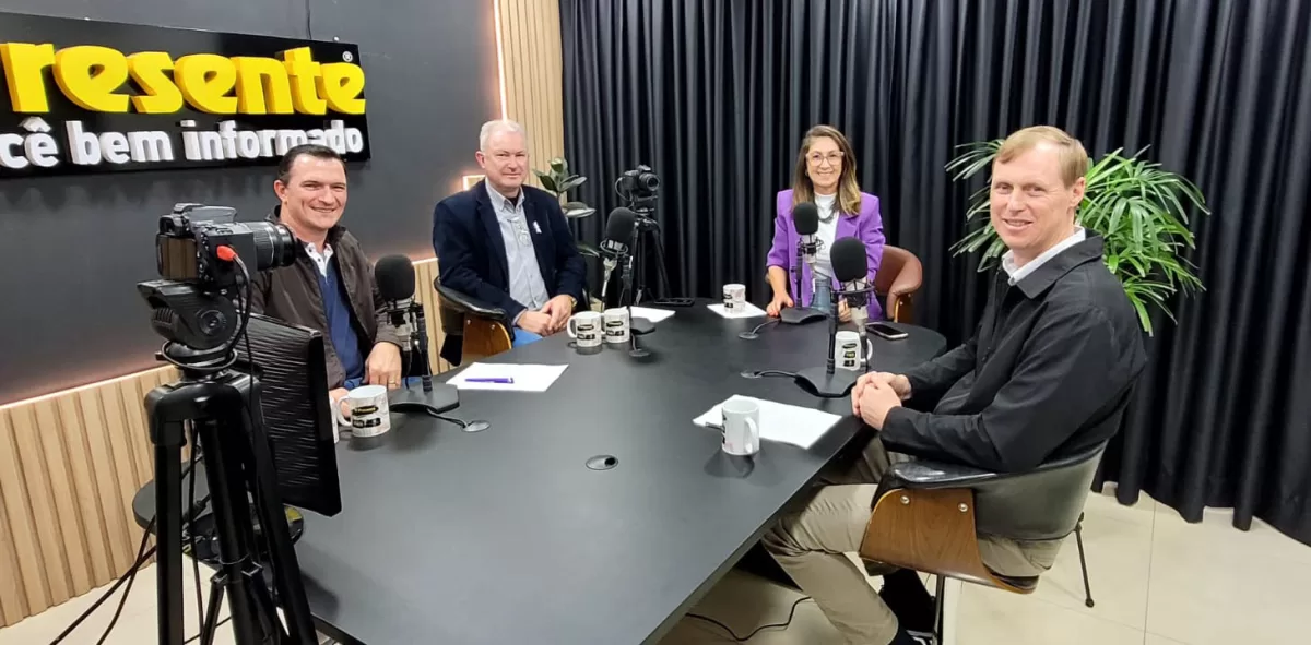 Os diretores da Copagril – Eloi Darci Podkowa (diretor-presidente), Cesar Luiz Petri (diretor vice-presidente) e Ademir Luis Griep (diretor-secretário) – estiveram no O Presente, na quarta-feira (13), para uma entrevista com a jornalista Ana Paula Wilmsen.