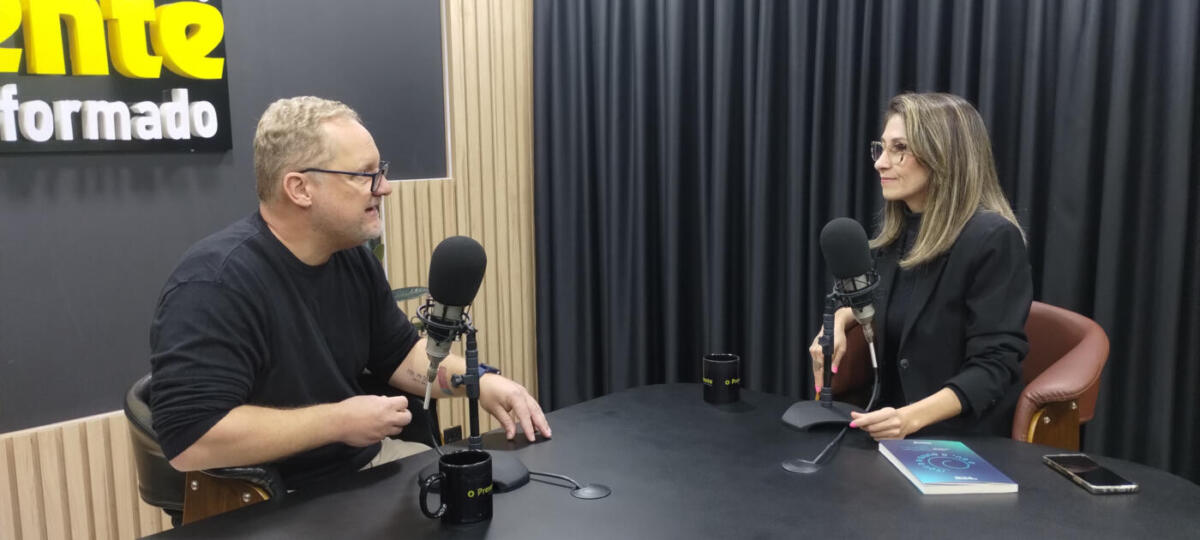 O palestrante Eduardo Berndt esteve no O Presente, nesta segunda-feira (16), para participar do Play, o programa que liga você à informação (Fotos: Dean Lopes/OP)Eduardo atua como palestrante há cerca de 14 anos, contudo, há aproximadamente dois anos, resolveu encarar o mundo das palestras de forma profissional. De lá para cá, se preparou para a transição da sua nova trajetória Amanhã, 17 de setembro, terça-feira, ele vai abrir a programação do Fórum Empresarial 2024, em Marechal Rondon, com a palestra “Consciência emocional e gestão de conflitos”Durante entrevista à jornalista Ana Paula Wilmsen, Eduardo relembrou as suas origens, os desafios enfrentados em diferentes fases da sua vida e como a decisão de se tornar um palestrante profissional mudou e transformou a sua caminhada A estreia como palestrante profissional em Marechal Rondon também vai marcar outro feito importante na vida de Eduardo, o lançamento da sua primeira obra, “O eu, o outro e o nós!”Eduardo falou da expectativa em palestrar no Fórum Empresarial, do que espera do seu futuro profissional e do seu primeiro livroEduardo Berndt: estudar a neurociência transformou a sua vidaTrajetória como diretor na Acimacar o incentivou de alguma maneira a chegar até aqui e se tornar um palestrante profissional“Satisfação imensa poder palestrar amanhã em Marechal Rondon. Estou ansioso”, destacou EduardoEduardo Berndt com a jornalista Ana Paula Wilmsen: primeira obra em fase de pré-venda e o segundo livro já está no “forno”