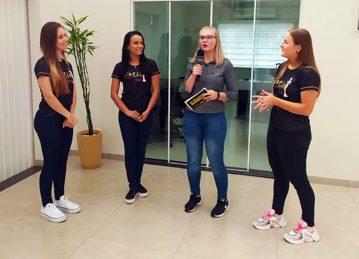 Confira flashes da visita ao Jornal O Presente de parte das candidatas ao título de Miss Entre Rios do Oeste 2022, na quinta-feira (1º), para divulgação do evento, que acontece sábado (3).