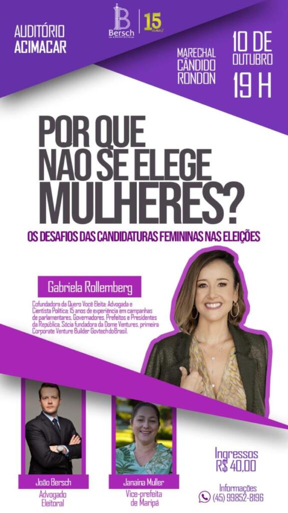 Às jornalistas Ana Paula Wilmsen e Maria Cristina Kunzler, Bersch falou sobre o porquê de trazer para Marechal Rondon uma palestra que indaga: “Por que não se elege mulheres – os desafios das candidaturas femininas nas eleições”, com Gabriela Rollemberg, renomada palestrante da área.