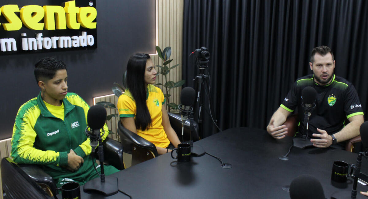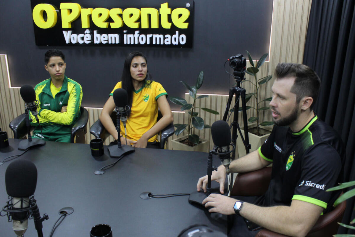 O técnico do time de futsal feminino de Marechal Cândido Rondon – AACC/Prefeitura, Jean Model, a fixo Ana e a goleira Joyce participaram, nesta segunda-feira (1º), do programa esportivo Arena O Presente.
