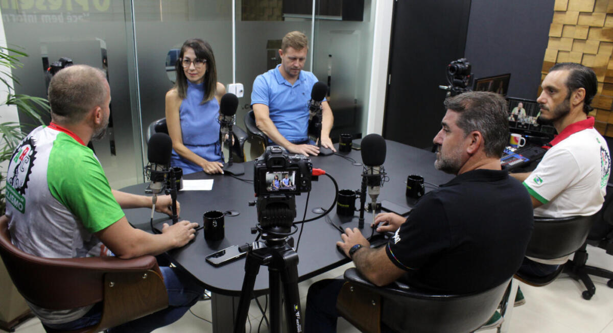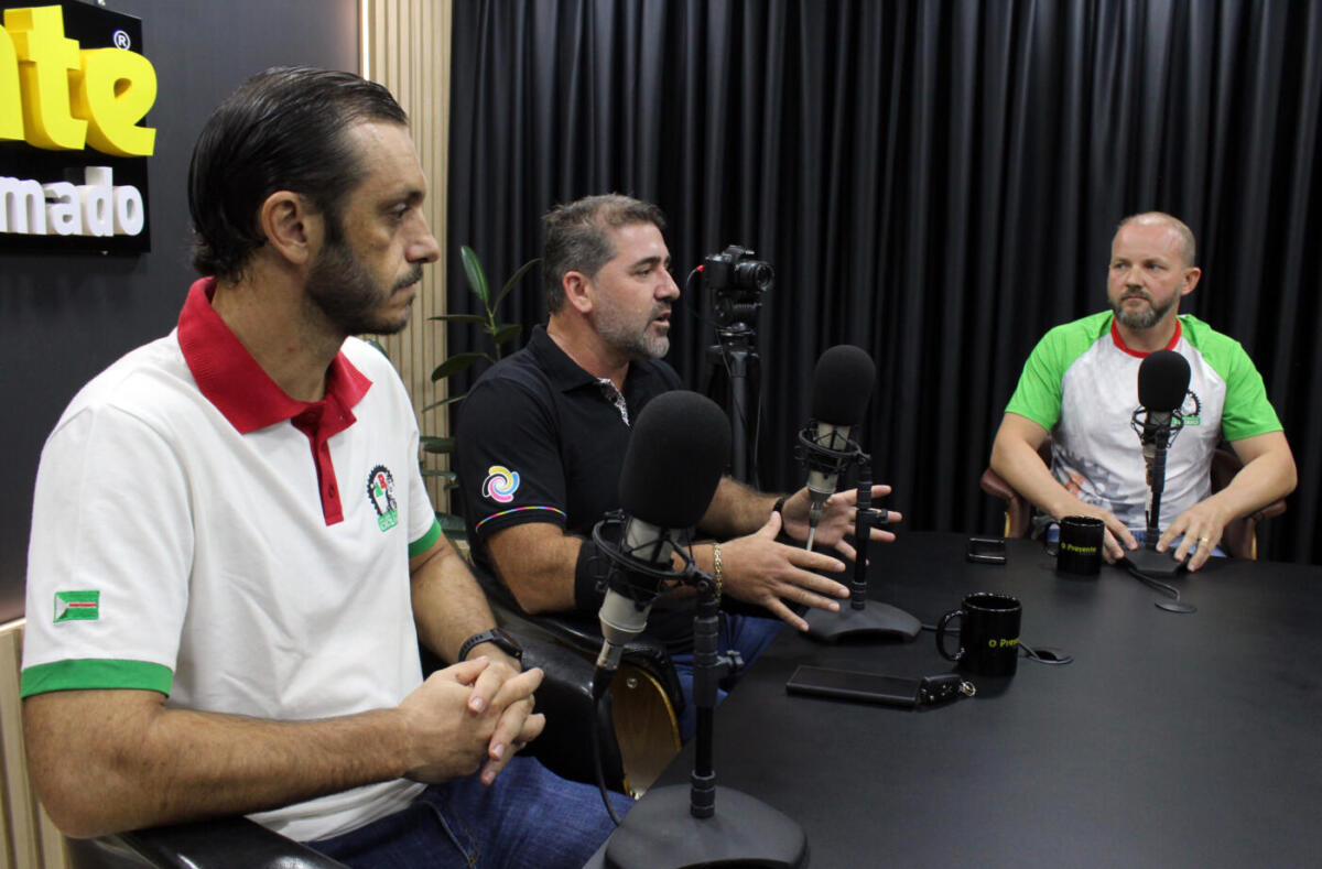 Membros da Associação Rondonense de Ciclismo (ARC) estiveram no Jornal O Presente, na sexta-feira (23), para divulgar a 1ª etapa do 8º Circuito Regional de Cicloturismo (Fotos: Sandro Mesquita/OP)Presidente da ARC, Rafael Schroder, disse que a etapa terá novidades nos pontos de parada: expectativa positiva para o grande diaTrajetória da Associação Rondonense de Ciclismo também foi assunto durante a entrevistaEles enalteceram que Marechal Rondon, oficialmente declarada por lei estadual como “Cidade Amiga da Bicicleta no Paraná”, é reconhecida por realizar o maior evento de cicloturismo do Estado, marca alcançada em 2018, quando reuniu 1.500 ciclistasGalera da ARC participou do programa “Arena O Presente”, um espaço onde o esporte tem voz e vezCristiano Viteck, diretor de comunicação social da ARC, e Paulo Rodrigo Coppetti, diretor de eventosRafael Schroder, presidente da ARCPaulo Rodrigo, Rafael e Cristiano: união de esforços para a realização de um grande evento
