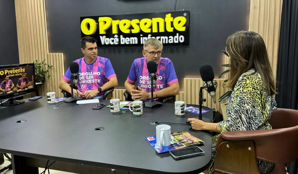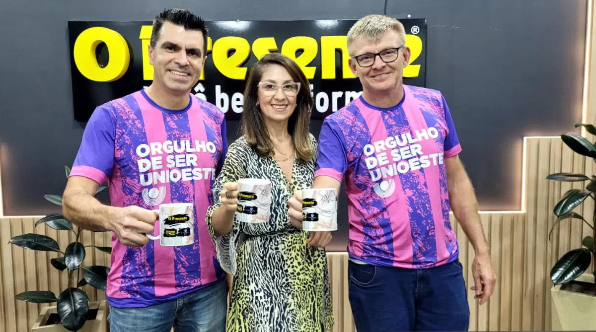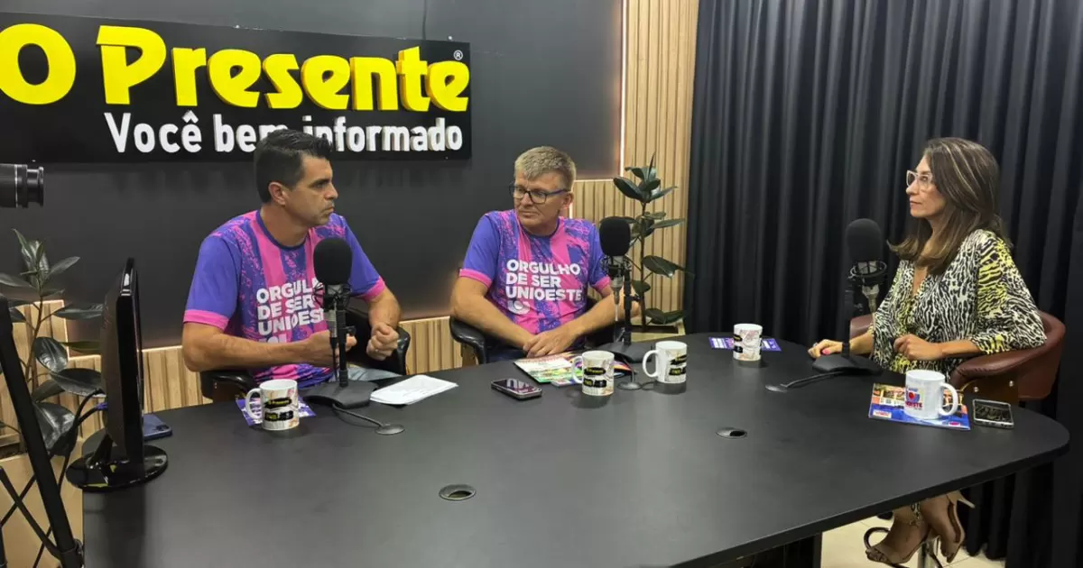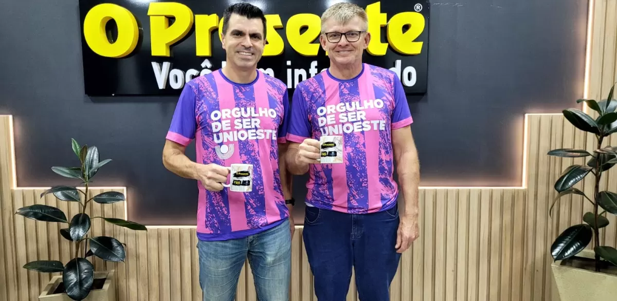 O diretor-geral do campus da Unioeste em Marechal Cândido Rondon, Emerson Fey, e o diretor do Centro de Ciências Humanas, Educação e Letras, Arestides Pereira da Silva Júnior, estiveram no O Presente, na quinta-feira (7), para divulgar a reta final do período de inscrições ao Vestibular 2026, que tem como tema “Estudar não saiu de moda”.