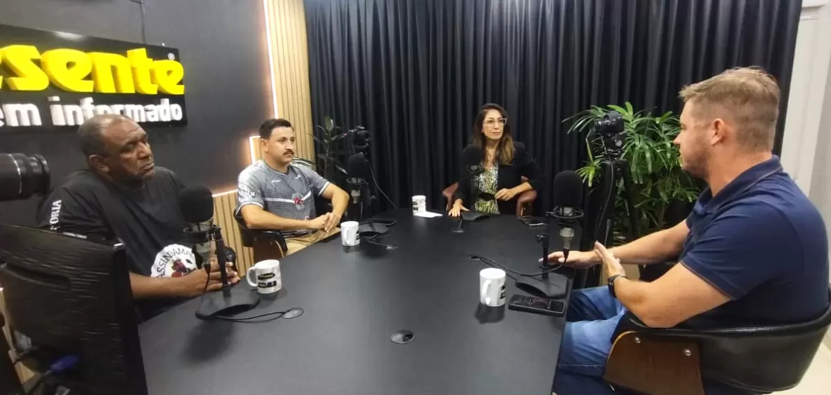 Os jornalistas Ana Paula Wilmsen e Gustavo da Cunha recebem o técnico da Assindamar, Lucas Javã, e o atleta Nei Dias, jogador da Seleção Brasileira e campeão mundial da modalidade, para falar da 4ª Copa Sul de Handebol em Cadeira de Rodas, que será realizada neste fim de semana em Marechal Cândido Rondon.