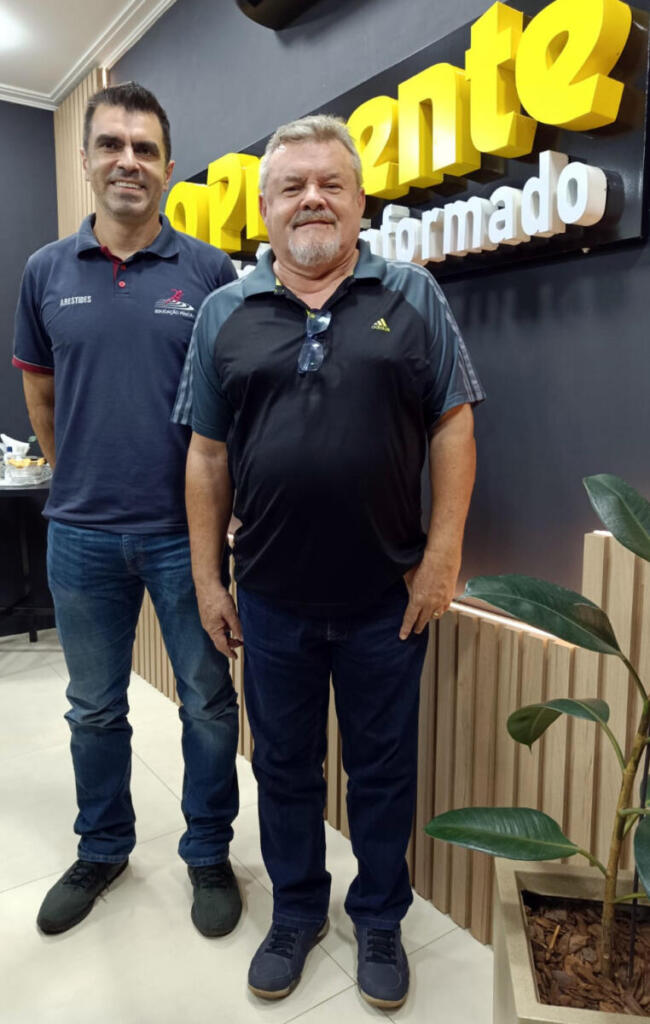 O diretor do Centro de Ciências Humanas, Educação e Letras (CCHEL) do campus de Marechal Cândido Rondon da Universidade Estadual do Oeste do Paraná (Unioeste), Arestides Pereira da Silva Júnior, e o professor aposentado da Unioeste, Lair Bersch, estiveram no Jornal O Presente, na terça-feira (22), para divulgar uma programação especial que será realizada para marcar os 40 anos do curso de Educação Física.