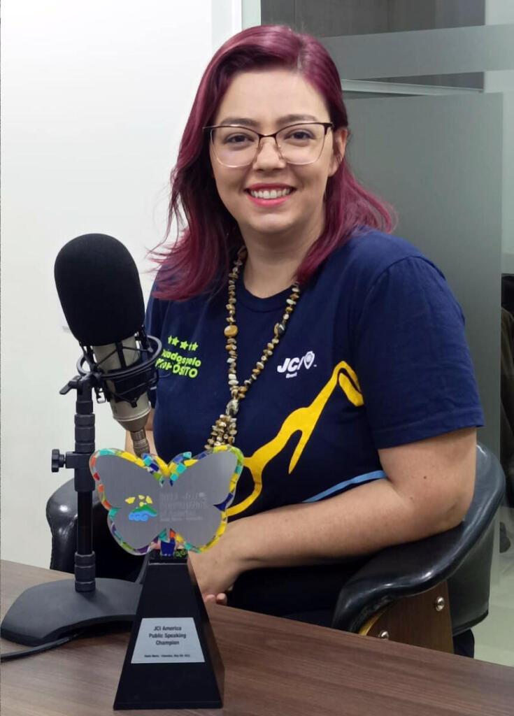 Bruna comentou sobre o desafio de discursar em inglês, de driblar o nervosismo e a ansiedade e enalteceu o apoio que recebeu dos companheiros de JCI, familiares e amigos.