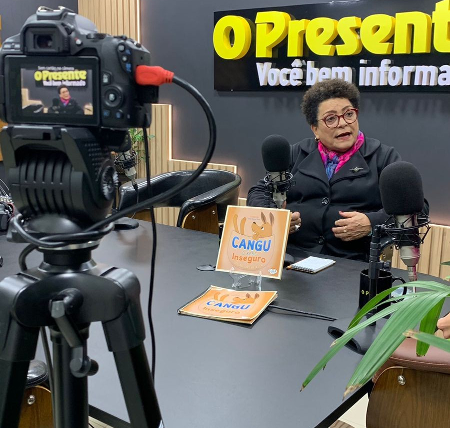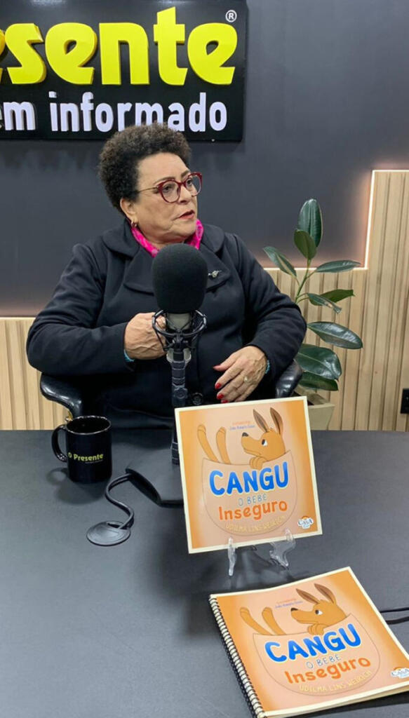 A pioneira rondonense, pesquisadora e escritora Udilma Lins Weirich esteve no Jornal O Presente, na segunda-feira (27), para falar da sua recém-lançada obra “Cangu: o bebê inseguro” (Fotos: Andressa Trentin/OP)Durante participação no Play, o programa que liga você à informação, ela contou à jornalista Ana Paula Wilmsen detalhes do livro, que está disponível para venda na Amazon e no site da editoraApaixonada por versos e prosas, a poeta rondonense declarou seu amor pela poesiaA obra “Cangu: o bebê inseguro” chama atenção para o mundo da diversidade, despertando olhares para inclusão, onde os personagens se reconhecem como únicos e especiais, ao mesmo tempo em que alerta para a importância do apoio e compreensão como pontos fundamentais na descoberta interior e para o desenvolvimento pessoal“Não espero retorno financeiro, faço por amor”, disse ela. “Se eu contar o quanto ganhei até aqui, acho foi uns R$ 300, ao longo desses 20 anos de escritos”Udilma ainda está avaliando a possibilidade de divulgar o “Cangu” na Bienal Internacional do Livro em São Paulo, onde ela já esteve em 2022 no lançamento de uma obra em que foi coautoraMembro fundadora da Academia de Letras do Oeste do Paraná (Alop), na qual ocupa a cadeira 28, Udilma é a única rondonense a integrar a entidade“Tenho uma inquietação. Gosto de produzir para gerar resultados. Quero deixar a minha marca e seguir fazendo coisas que sejam positivas para a sociedade”, destacou UdilmaRegistro durante os bastidores do programa