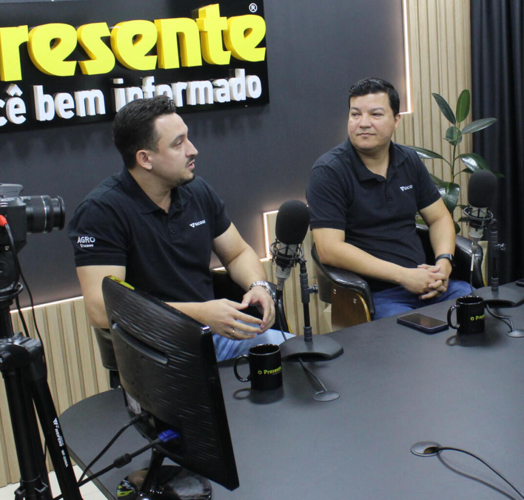 Os colaboradores do Sicoob Confiança Romeu Rodrigues Araujo, gerente da Agência Avenida em Marechal Cândido Rondon, e Marco Antonio Winter, gerente de relacionamento Agro na Agência Avenida, estiveram no Jornal O Presente, nesta semana, para participar do Play, o programa que liga você à informação.