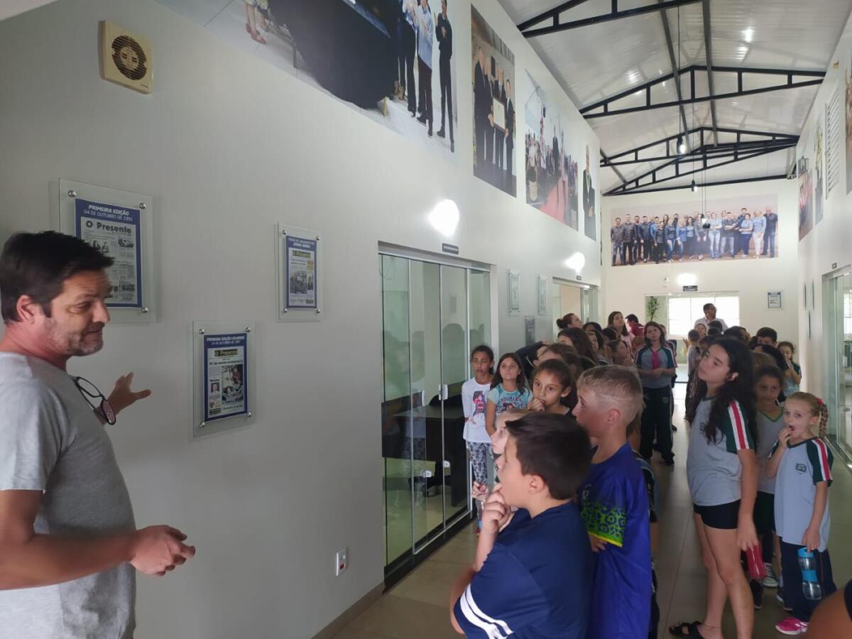 Eles viram a primeira capa do jornal impresso, a primeira capa em colorido. Conferiram os materiais especiais e segmentados produzidos pela editora e também conheceram um pouco do O Presente Rural, um jornal de destaque no cenário nacional.