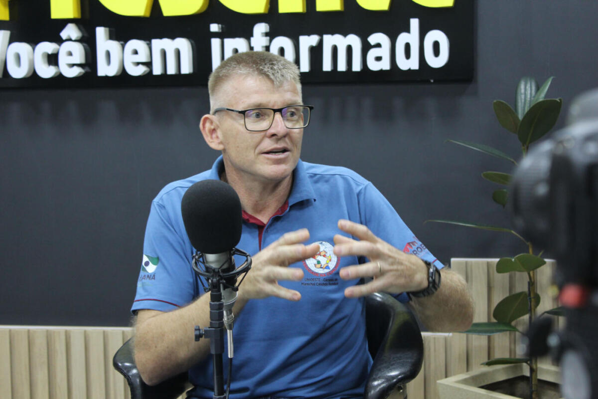 O diretor do campus de Marechal Cândido Rondon da Universidade Estadual do Oeste do Paraná (Unioeste), Emerson Fey, e o assessor especial da direção do campus, Paulo Koling, estiveram no O Presente, nesta semana (Fotos: Dean Lopes/OP)Diretor do campus da Unioeste em Marechal Rondon, Emerson FeyAssessor especial da direção do campus, Paulo KolingBastidores da gravação“São 8,5 mil pessoas transformadas. De 1980 a setembro de 2024, esse é o número de pessoas que obtiveram seu título de graduação pela Unioeste”, destacou Emerson“Quando falamos em pós-graduação (mestrado, doutorado e pós-doutorado), esse número é de 1.342 pessoas que defenderam suas teses pela Unioeste em Marechal Rondon”, informou o diretor do campusPaulo: “Dia 29 de setembro de 1980 foi o primeiro dia de aula na Facimar. A aula inaugural foi em 4 de outubro. Então, esse ano fechamos 44 anos de história”Emerson e Paulo destacaram as conquistas e os avanços alcançados nestas quatro décadas de história, desde a Facimar até a Unioeste, bem como números da universidadeFalaram, ainda, sobre os desafios futuros, diante de uma realidade bastante diferente de pouco tempo atrás